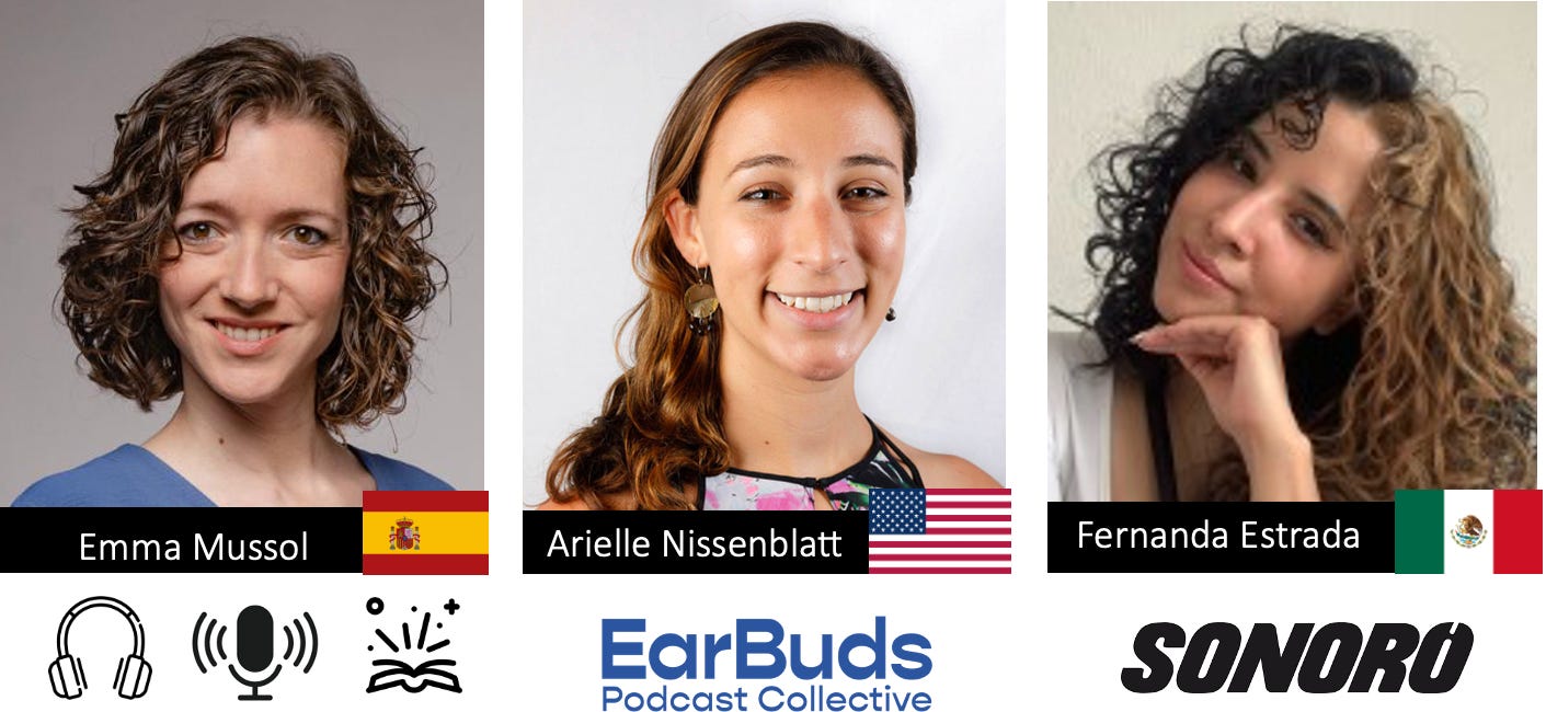 Arielle Nissenblat: «¡En 2025 celebramos ocho años de la newsletter EarBuds Podcast Collective! Este año se cumplirán nueve, y nunca nos hemos saltado una semana. Desde 2017, enviamos cada siete días un correo electrónico con un tema y cinco episodios relacionados con él, y cada edición está curada por una persona distinta. Los temas son muy diferentes: educación, derecho, naturaleza, historia, infantil, cine, deportes, LGBTQ+, viajes, tecnología, música pop, true crime, salud, inmigración... Debido a esa heterogeneidad, decidimos agrupar algunas de las listas por tema, y ahora estamos aumentando la producción de EarBuds History, EarBuds True Crime, EarBuds Fiction y mucho más».