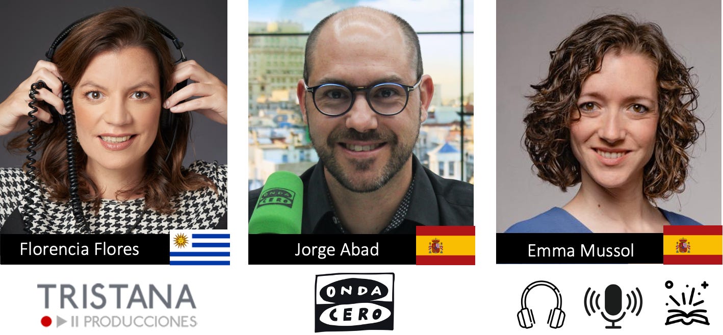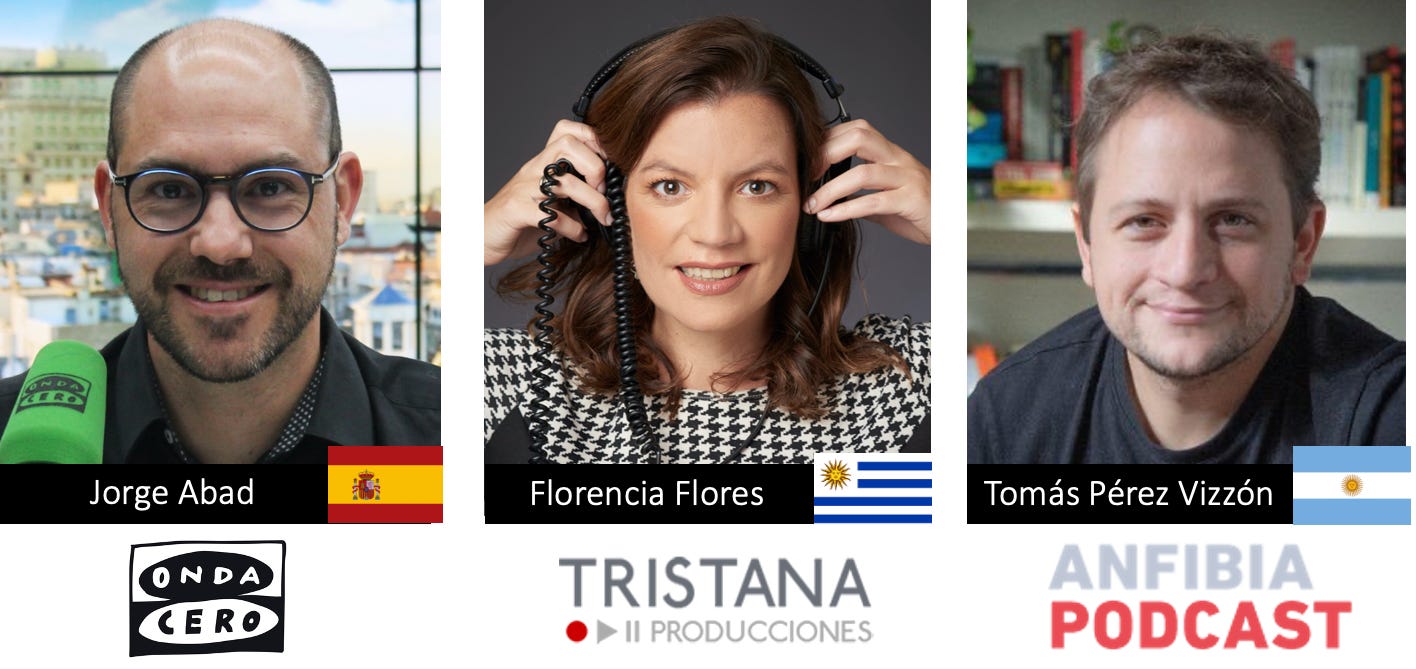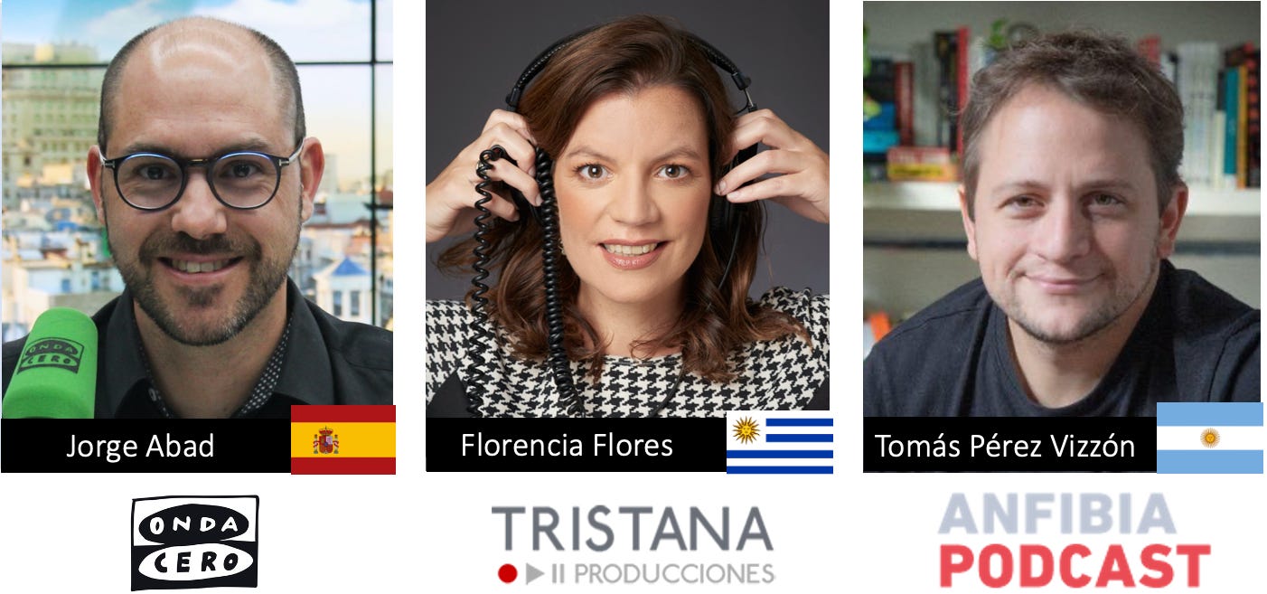 Florencia Flores refuerza las tesis de Jorge: «Deberíamos pensar en fortalecer los proyectos narrativos; cada vez abundan más los formatos conversacionales, y eso va en contra de nuestro contenido y talento. Habría que evitar homogeneización de los formatos y estilos donde todos hacen lo mismo: es necesario experimentar. Está bien que el podcast crezca y se profesionalice, pero no a costa del riesgo creativo ni la exploración del lenguaje. Ojalá este año veamos ¡y escuchemos! más ficciones sonoras y documentales autorales y menos contenidos pensados para cumplir con los algoritmos y las plataformas. Quiero defender el audio como un espacio de imaginación, de intimidad, de escucha atenta».